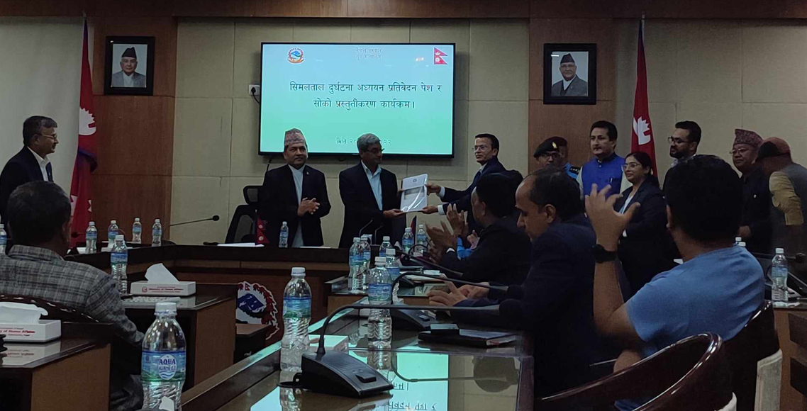 सिमलताल दुर्घटना अध्ययन कार्यदलले प्रतिवेदन बुझाएको छ। मंगलबार मन्त्रालयमा आयोजित एक कार्यक्रमकाबीच कार्यदलले गृहमन्त्री रमेश लेखकलाई प्रतिवेदन बुझाएको हो।कार्यदलका संयोजक समेत रहेका गृहमन्त्रालयका सहसचिव छवि रिजालले मन्त्री लेखक समक्ष प्रतिवेदन पेस गरे।