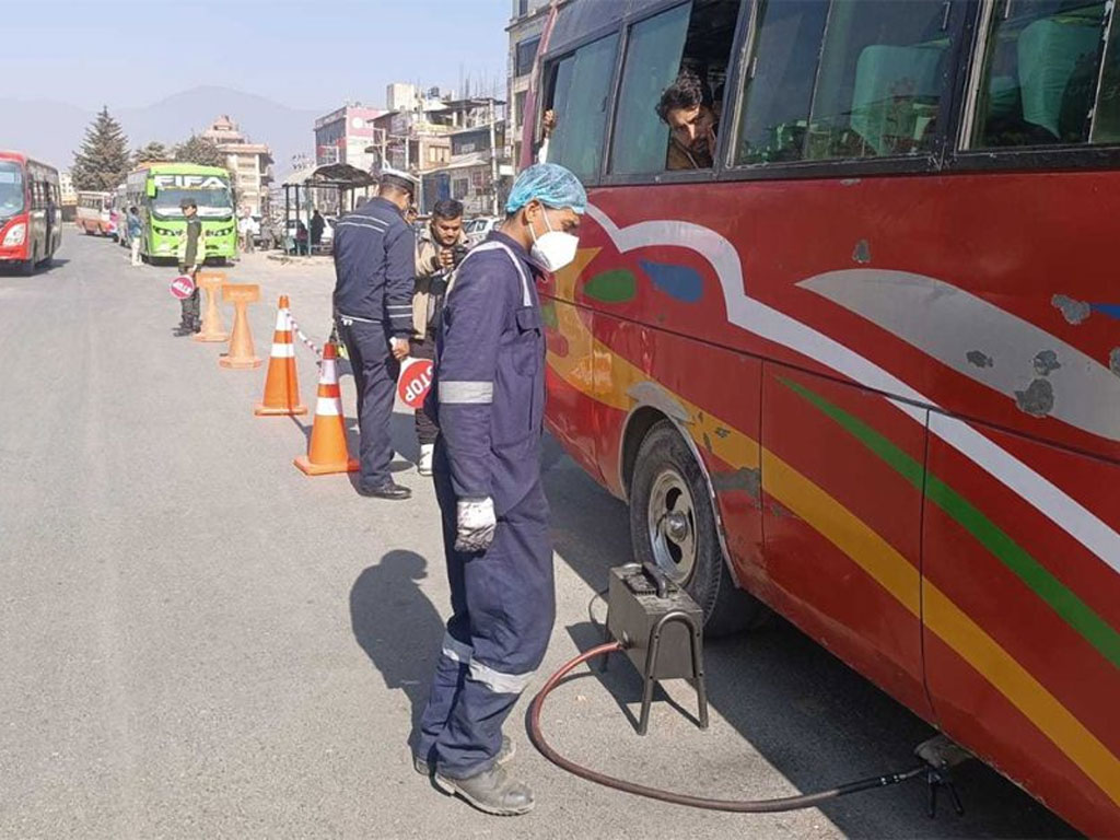 काठमाडौँ महानगरपालिका र ट्राफिक प्रहरीको संयुक्त पहलमा महानगर क्षेत्रमा सञ्चालनमा रहेका साझा यातायातका सवारी साधनको प्रदूषण जाँच गरिएको छ ।