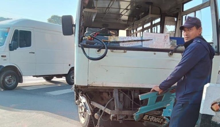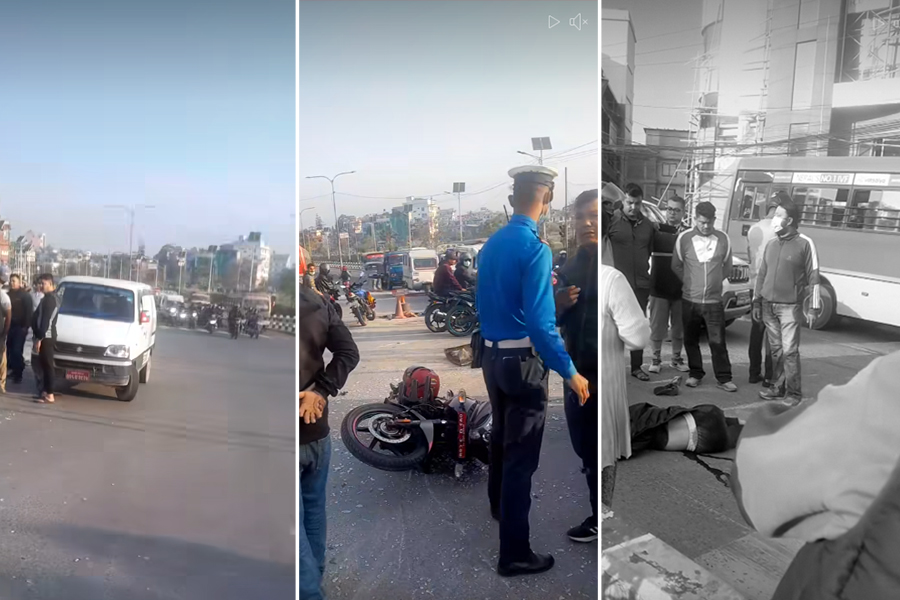तीनकुनेस्थित सडकमा बा३ख ७०६२ नम्बरको बस, बा.प्र.०१-०२६च २९२७ नम्बरको भ्यान र बा.प्र.०२-३८४७ नम्बरको मोटरसाइकल आपसमा ठोक्किएका थिए। बानेश्वरबाट तीनकुने गइरहेको बसले सुरूमा भ्यानलाई ठक्कर दिएको र त्यसपछि भ्यानले मोटरसाइकललाई ठक्कर दिएको थियो । प्रहरीले बसका चालक रामकुमार खड्का, भ्यान र मोटरसाइकललाई नियन्त्रणमा लिएको छ ।