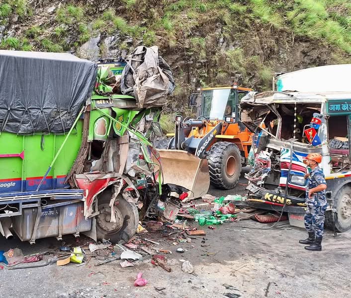 बिहान ६ः५० बजे नारायणगढबाट मुग्लिनतर्फ गइरहेको बागमती प्रदेश ०१–००६ ख ६२८७ नम्बरको ट्रक र मुग्लिनबाट नारायणगढतर्फ आउँदै गरेको ना ६ ख ९८९७ नम्बरको ट्रक एक आपसमा ठोक्किएका हुन् ।